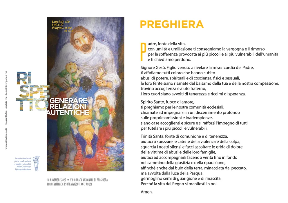è il tema scelto per la V Giornata nazionale di preghiera per le vittime e i sopravvissuti agli abusi nella Chiesa e il versetto della Scrittura che guida i testi dei materiali è tra i più noti del Vangelo: “Lasciate che i piccoli vengano a me” (Mc 10,14).